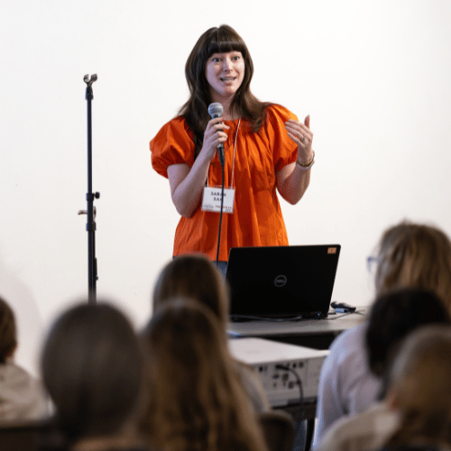 “Sarah is incredible! She’s such an engaging speaker & knows how to capture a crowd. The kids (& parents) in the audience were locked in the whole presentation and jumped at the chance to ask Sarah questions about herself & her career as an author/illustrator. The panelled storytelling activity she planned at the end sparked some incredible drawings from the kids and they loved being able to tell their own stories, with many of them walking away wanting to seriously pursue becoming an author themselves. Graphic novels are such a valuable part of today’s literary landscape and I think it was a really incredible moment for a lot of the kids to see they can pursue writing and illustrating as a very real career. Sarah’s passion is contagious & the way she speaks about her work is so inspiring, 10/10 would host again!” — Merrill Memorial Library, 2025